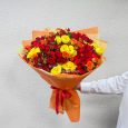 Букет желтых кустовых роз с хризантемами