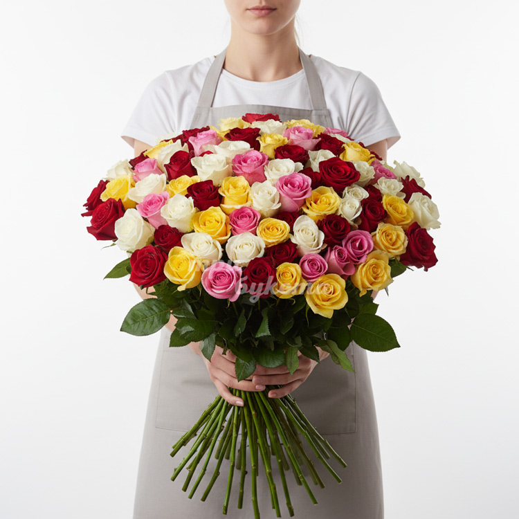 • Разноцветные розы, 101 шт.