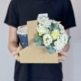 Бокс с кофе и фиолетовыми эустомами