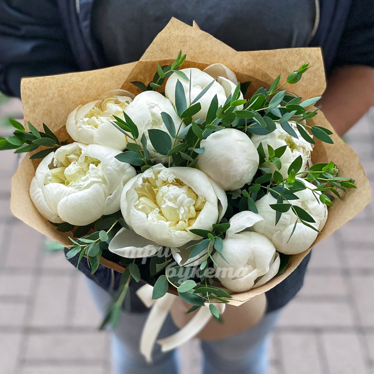 • Белые пионы, 9 шт.
