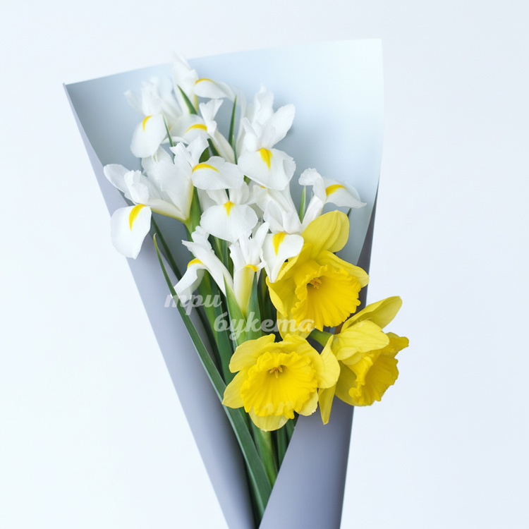 Букет из белых ирисов и нарциссов
