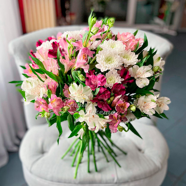 Цветной букет альстромерий и хризантем