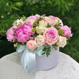 Коробка розовых и кремовых кустовых роз