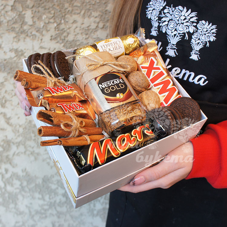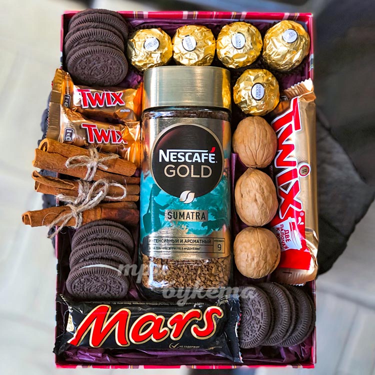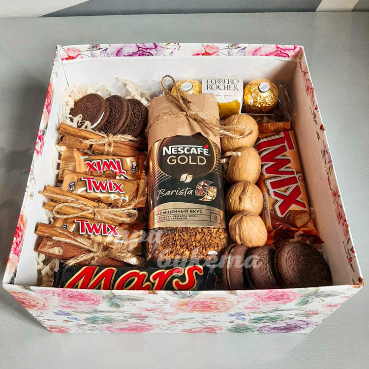 Коробочка с кофе и сладостями