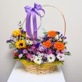 Корзина нежно-розовых роз и эустом