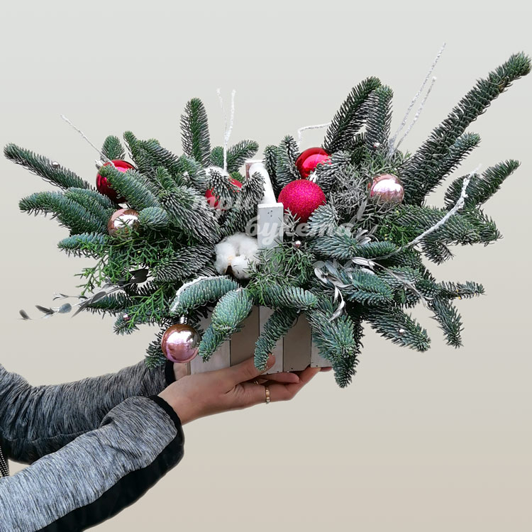 Ящичек хвойных веток на Новый год