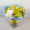 Зеленый букет из хризантем и альстромерий